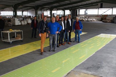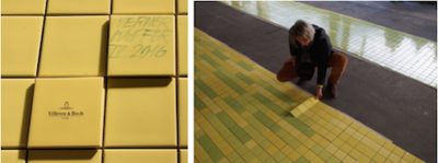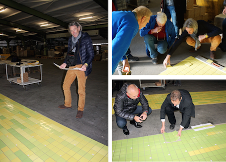 Doch zunächst wurde der preisgekrönte Entwurf erstmals im Atelier Artefactur von Villeroy & Boch in Merzig umgesetzt und ausgelegt. Speziell für derartige raumfüllende Vorhaben nutzt das Unternehmen eine Werkhalle, so dass Künstler und Architekten ihre Arbeiten noch einmal in Gänze beurteilen und im Detail eventuell justieren können. Werner Kapfer, der bekannt ist für eine „konzentrierte Malerei“ – so ein Titel einer Ausstellung – mit intensiven Farben, fand bei der traditionsreichen Manufaktur einen versierten Geschäftspartner für sein Vorhaben.