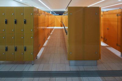 Het gehele zwembadgedeelte incl. omkleedruimten binnenin het complex is, behalve het zwembad zelf, vormgegeven met de VilboStone porcellanatoserie X-PLANE van Villeroy & Boch Tegels, met zijn trendy betonlook met fijne kleurschakeringen. Op 5.000 m² zijn crèmekleurige tegels in de twee modulaire formaten 30 x 60 cm en 15 x 60 cm in verband gelegd, waardoor op het grote vloeroppervlak een zowel harmonisch als levendig beeld ontstaat. Verder zijn ca. 600 m² bijpassende mozaïektegels in het speciale formaat 5 x 5 cm gebruikt, die met slipvastheid R10 ook geschikt zijn voor doucheruimten.